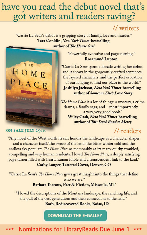 In a year distinguished by outstanding debut novels, Carrie La Seur has written one that stakes its own claim to the distinctive territory known as the literary suspense novel. I was pulled in on the first page of The Home Place and the story had me riveted until the last page. I was equally impressed by the quality of the writing and the multi-layered plot. There is a great deal going on in The Home Place but it never feels overloaded or heavy-handed. The many characters and conflicts, the murder mystery, the love story, and the threat posed by coal mining to the ranchers’ way of life in southeastern Montana are all handled so expertly that one would never suspect that this is La Seur’s first novel. And she wrote it while working full time as an attorney and raising children. You can read my review here.