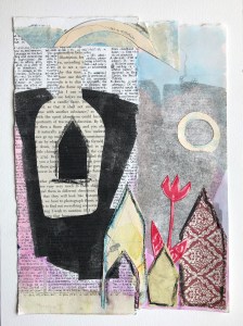 While I made art, as often as I could, I also became certified as a Sequencing teacher, a creativity coach, and I earned an MFA. I learned to write fiction. I write stories and novels and sometimes I still write poetry. I still make art, as often as I can. I teach a class called Adventures in Word and Image in which I invite writers to come and generate new work and to try their hands at incorporating key phrases and images from raw writing into materials–––ripped paper, ephemera, pencil, and glue. We create erasures and fold mini-books.
