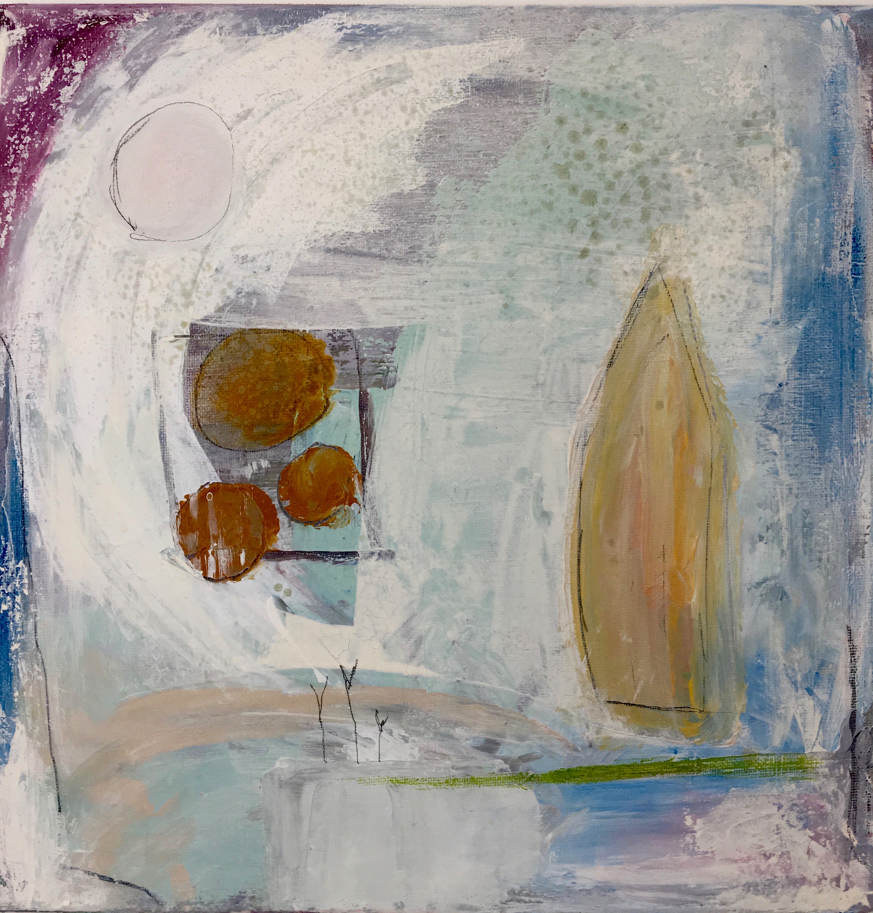 That was over ten years ago. Since then, I’ve gone on to find my voice through any and all forms of making. I took a class called Sequencing, the habit of an artist and teacher, the late Ric Campman, who passed it down to others. The process seeks to free people from the critical mind and find joy in the process of making. I went from producing magical little oil and cold wax seascapes with my non-dominant hand to building assemblages, large and three-dimensional, a wildly forgiving form. Twenty bucks a half-day in a weekly open studio class led by four teaching artists, all of whom were large-hearted sages. They moved me onto printmaking, also highly freeing. I tried my hand at watercolors, pastels, and pencils through the kindness of mixed media. I wanted my hands on all of the materials. I wanted to ink and splash and drip, to rip and tear and glue.