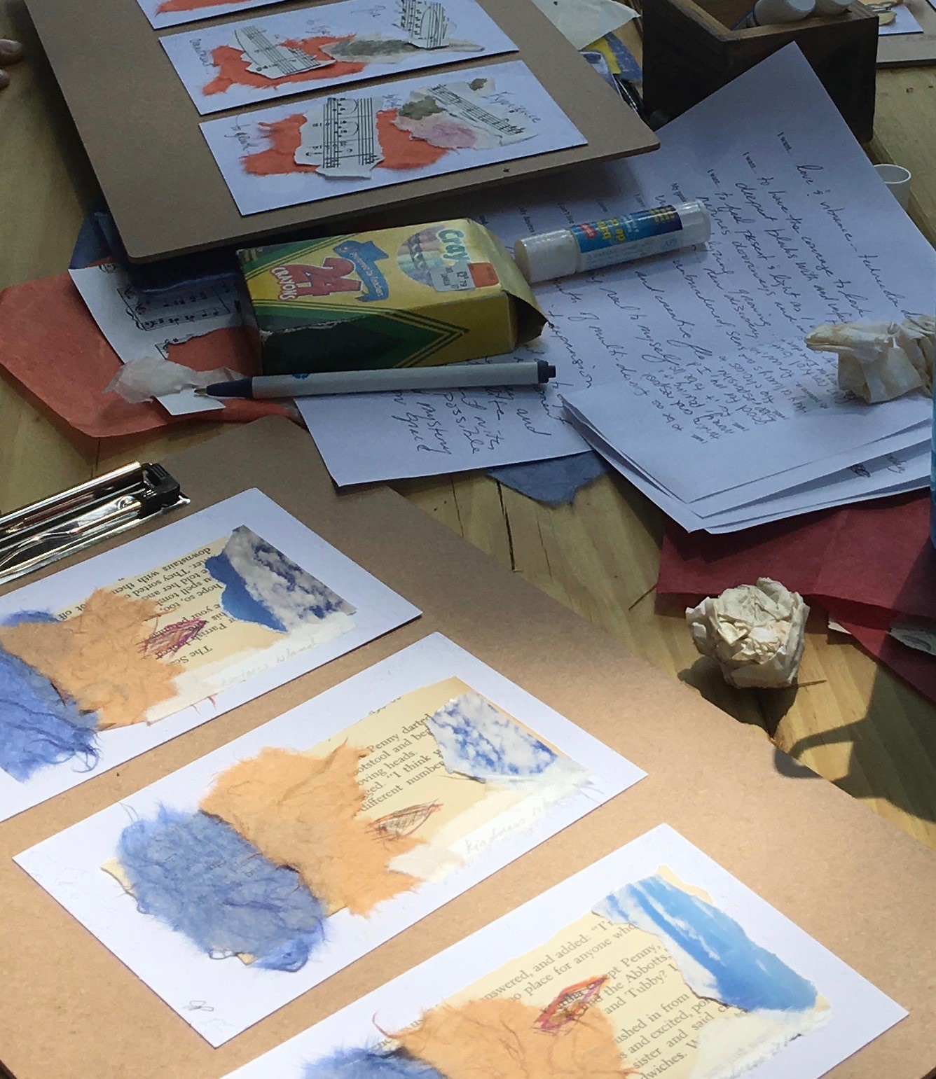 We work together in silence, moving from our beautiful worlds to our beautiful paper images and back to our blank pages, where we write some more. There is always magic.