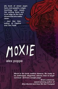 What really stands out in Moxie is Jax’s voice, which is a rollercoaster that races us along on her journey to possible redemption. There’s a rough, urban poetry in much of Moxie that gives it a NYC model noir feel.