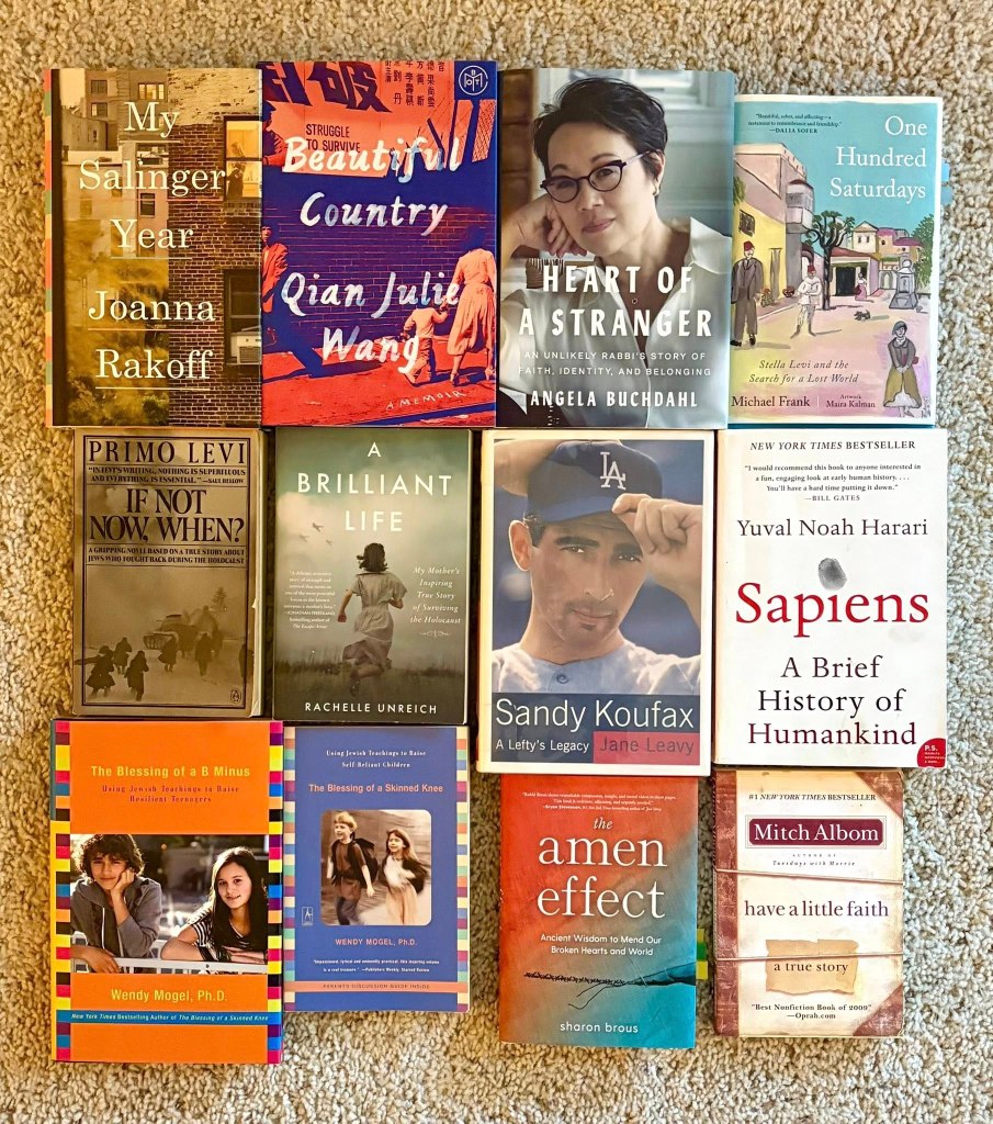 Over on my Instagram account (same name as this one), I’ve been sharing one post a day in celebration of Jewish Book Month since November 20. I decided to share my collection by genre, one flatlay photo at a time. I thought I would share those photos here as a source for good books in several genres on a variety of subjects. (At the request of an Instagram follower, I’ve typed up a list of all the books I’ve featured. If you’d like a copy, just drop a comment with your email and I’ll send it to you.)