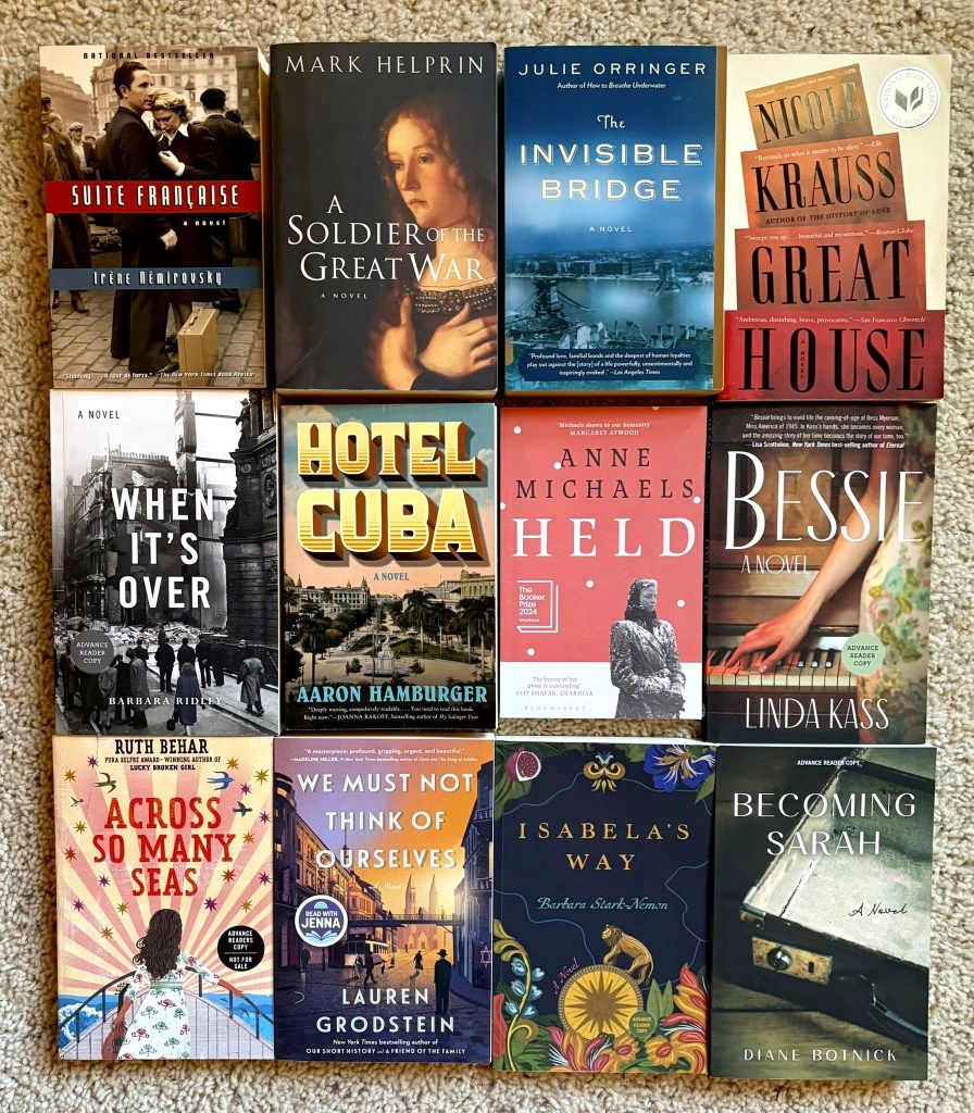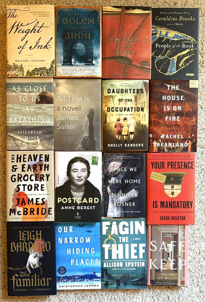 The sixteen books above are all outstanding. The four books in the top row are must reads, as are The Postcard (my favorite book of 2023) and The Safekeep, which won the Women’s Prize for Fiction last year (pictured above is the British edition; the US cover features two green pears).