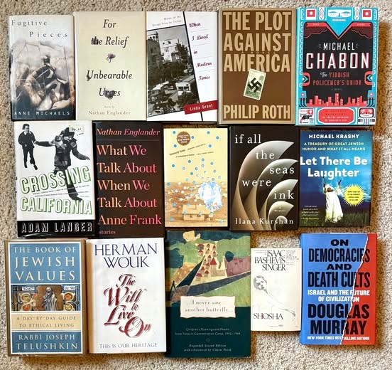 Over on my Instagram account (same name as this one), I’ve been sharing one post a day in celebration of Jewish Book Month since November 20. I decided to share my collection by genre, one flatlay photo at a time. I thought I would share those photos here as a source for good books in several genres on a variety of subjects. (At the request of an Instagram follower, I’ve typed up a list of all the books I’ve featured. If you’d like a copy, just drop a comment with your email and I’ll send it to you.)